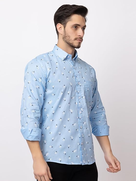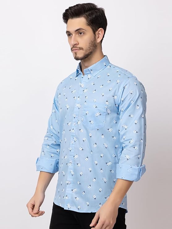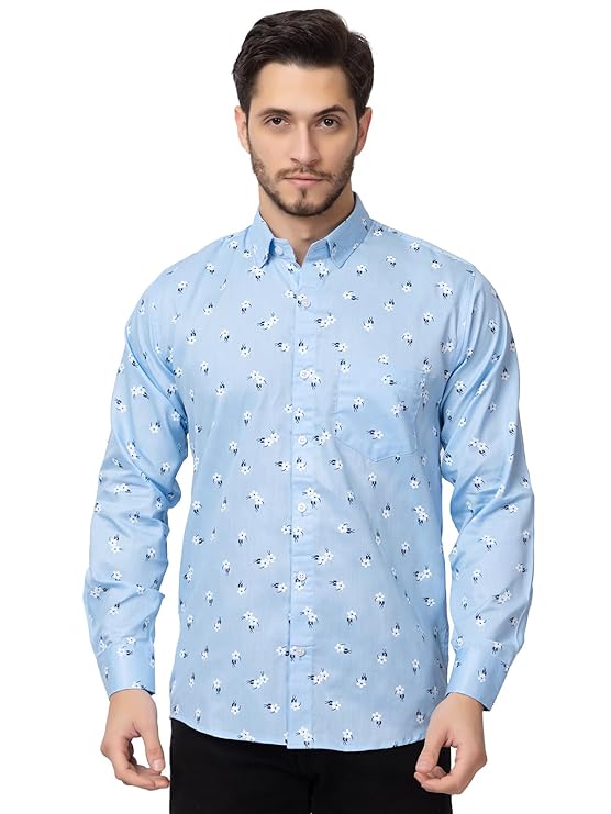 Refresh your wardrobe with this stylish men’s shirt in a cool mint green hue. Designed with a subtle all-over floral print in crisp white and deep navy, it adds just the right touch of personality while keeping your look refined and versatile. Made from 100% pure cotton, this long sleeved shirt offers exceptional breathability and all day comfort. The lightweight fabric feels soft against the skin, making it perfect for both casual outings and smart casual occasions. Pair it with tailored trousers for a polished appearance or dress it down with denim for an effortlessly relaxed vibe.